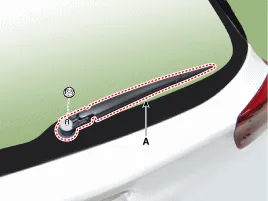Befestigungsmutter lösen, dann Heckscheibenwischerarm und Wischerblatt (A) abnehmen.