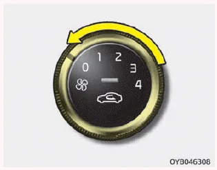 Zum Ausschalten des Gebläses drehen Sie den Reglerknopf für die Gebläsedrehzahl in die Stellung „0“.