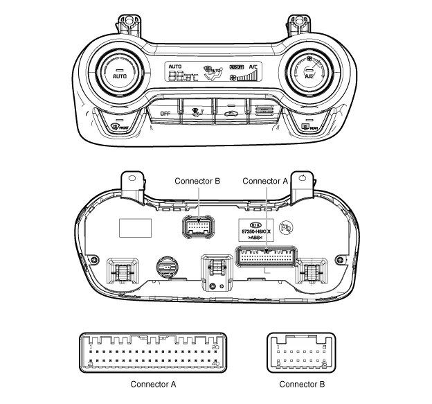 Heizungs- und Klimaanlagen-Steuergerät (A) nach Lösen der Befestigungseinheit entfernen.