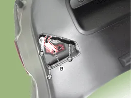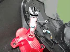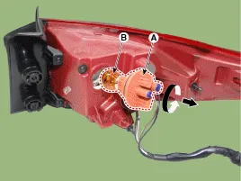 Die Rückfahrleuchten-Glühlampe (B) durch Drehen der Fassung (A) entgegen dem Uhrzeigersinn entfernen.