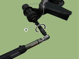 Spezialwerkzeug durch Drehen der Hauptschraube (A) entgegen dem Uhrzeigersinn korrekt anbringen.