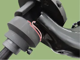 Buchse und Spezialwerkzeug von der Drehstabachse entfernen.