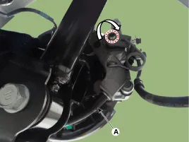 Schraube (A) an der hinteren Bremsscheibe lösen, dann die hintere Bremsscheibe abnehmen.