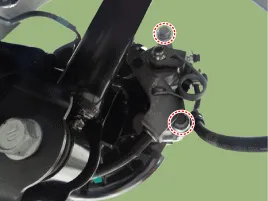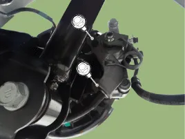 Befestigungsschrauben des Bremssattels lösen, dann hinteren Bremssattel ausbauen.
