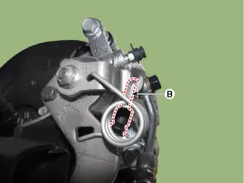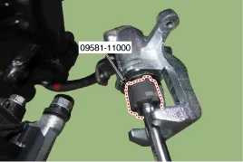 Beim Einbau des Bremssattels ein Spezialwerkzeug (09581-11000) verwenden.