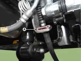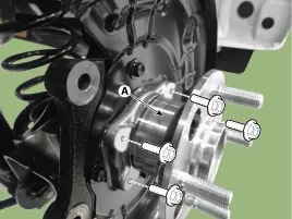 Schrauben lösen und Nabe (A) von der Drehstabachse abnehmen.