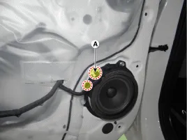Steckverbinder (A) des Hintertürlautsprechers abziehen, dann Befestigungsclips der Verkabelung entfernen.
