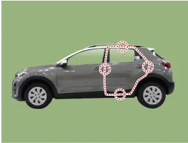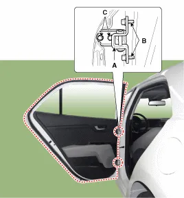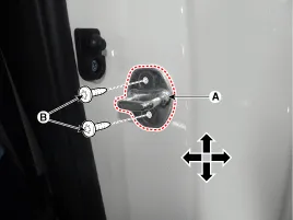 Den Außengriff der Tür anfassen und die Tür gegen die Karosserie drücken, um sicherzustellen, dass der Schließer ein bündiges Schließen zulässt. Wenn die Tür ordnungsgemäß schließt, die Schrauben anziehen und es nochmals überprüfen. |