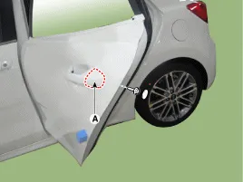 Befestigungsschraube lösen und Hintertüraußengriffabdeckung (A) abnehmen.