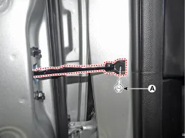 Befestigungsschraube des Hintertürfeststellers (A) lösen.