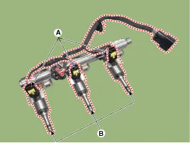 Steckverbinder (A) abziehen und dann das Einspritzventil (B) von der Förderleitung trennen.