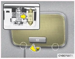 WARNUNG Vergewissern Sie sich vor Arbeiten an der Innenraumbeleuchtung, dass die Leuchten ausgeschaltet sind (Schalterstellung OFF), um zu vermeiden, dass Ihre Finger einen Stromschlag erhalten.