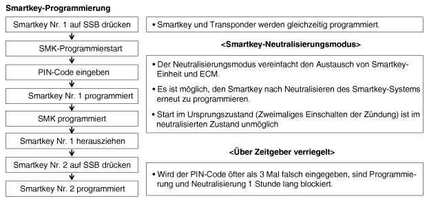 Nach dem Ersetzen durch eine neue Smart-Key-Einheit oder einen Fernbedienungsschlüssel ist ein Starten wie folgt möglich.