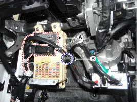 Kabelbefestigungsclip (B) des Innenraum-Sicherungskastens entfernen.