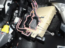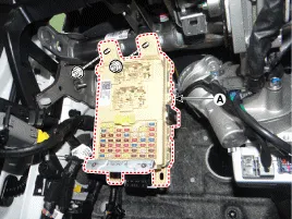 Befestigungsmuttern lösen, dann den Innenraum-Sicherungskasten (A) entfernen.