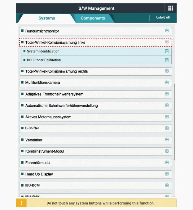 Bei Fahrzeugen, deren hinterer Stoßfänger bei einem Unfall beschädigt wurde, sowie Fahrzeugen, bei denen die BCW-Einheit ersetzt wurde, muss die Ausrichtung der BCW-Einheit mit dem KDS durchgeführt werden. |