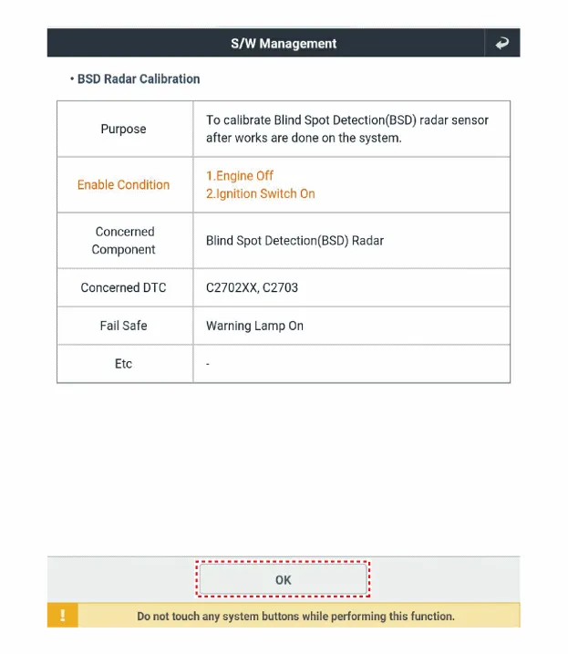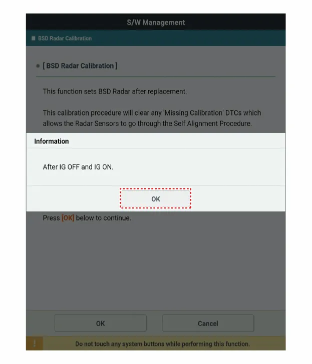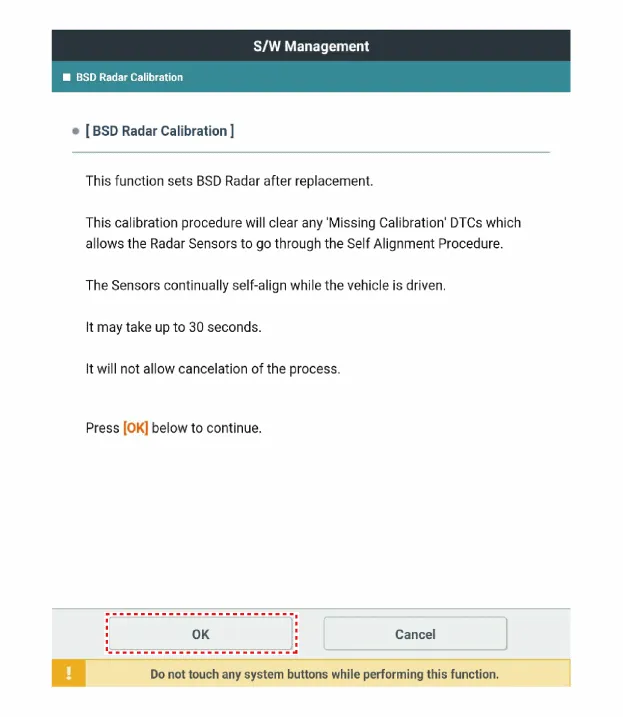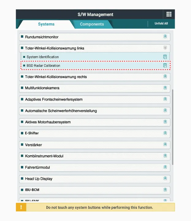 Unter BCW-System die Vorgehensweise "BCW-Radarkalibrierung" wählen.