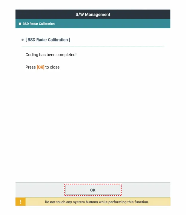 Anhand der KDS-Bildschirmmeldungen den Vorgang "BCW Radar Calibration" durchführen.