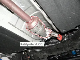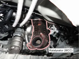 Der Katalysator des Benzinmotors ist ein Dreiwege-Katalysator. Er oxidiert Kohlenmonoxide und Kohlenwasserstoffe (HC) und trennt Sauerstoff von den Stickoxiden (NOx).