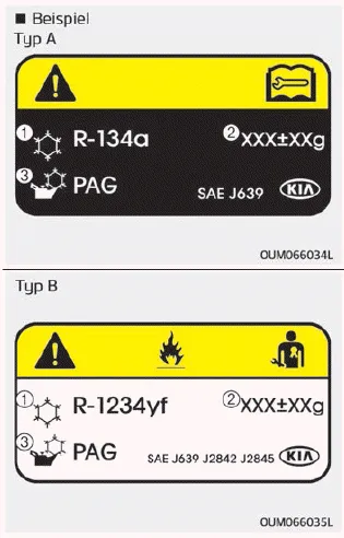 ❈ Die tatsächliche Kennzeichnung des Kältemittels der Klimaanlage in Ihrem Fahrzeug kann von dieser Abbildung abweichen.