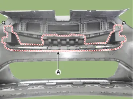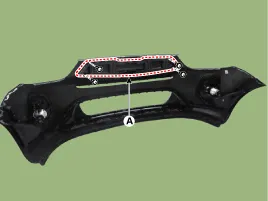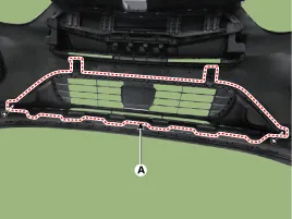 Befestigungsschrauben lösen, dann Kühlergrill (A) des vorderen Stoßfängers entfernen.