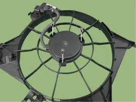 Lüftermotor (A) von der Kühlerlüfterverkleidung abbauen.