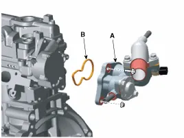 Kühlmitteltemperaturregelung (A) mit der Gummidichtung (B) ausbauen.