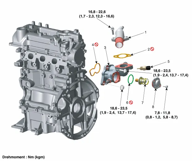 6. O-Ring Block-Thermostatkappe 7. Block-Thermostat 8. Block-Thermostatkappe |