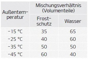 Entnehmen Sie das Mischungsverhältnis der nachstehenden Tabelle.