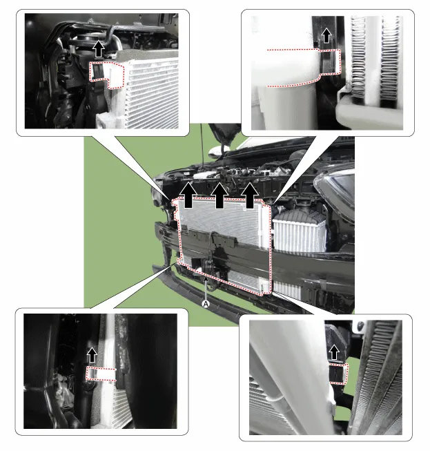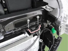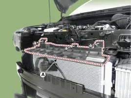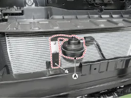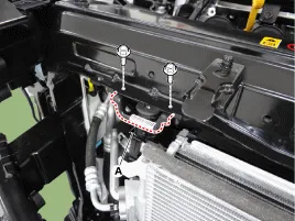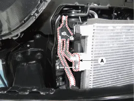 Befestigungsschrauben lösen, dann obere Kühler-Montagehalterung (A) ausbauen.