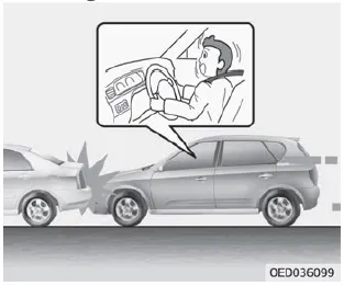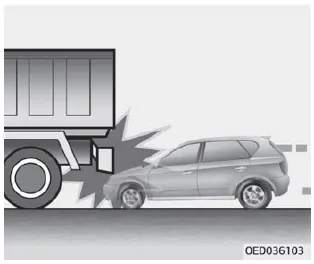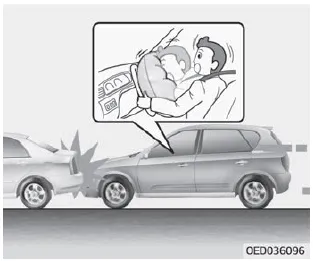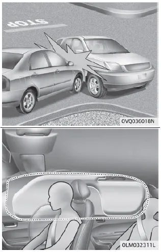 • Bei bestimmten Kollisionen mit geringer Geschwindigkeit ist es möglich, dass Airbags nicht ausgelöst werden. Airbags sind so konzipiert, dass sie in solchen Fällen nicht ausgelöst werden, da sie unter diesen Umständen die Schutzwirkung der Sicherheitsgurte nicht verbessern können.