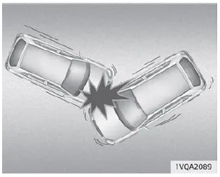 • Die Frontairbags werden bei seitlichen Kollisionen evtl. nicht ausgelöst, da sich die Insassen in die Richtung der Aufprallseite bewegen; deshalb könnten entfaltete Frontairbags bei seitlichen Kollisionen keinen zusätzlichen Personenschutz bieten. Bei Ausstattung mit Seiten- und Kopfairbags können die Airbags je nach Intensität, Fahrzeuggeschwindigkeit und Aufprallwinkel ausgelöst werden.