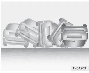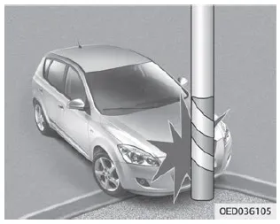 • Es ist möglich, dass Airbags bei einer Kollision mit einem Objekt wie einem Pfahl oder einem Baum, wo sich der Aufprallpunkt auf einen schmalen Bereich konzentriert und wo nicht die volle Aufprallkraft an die Sensoren geliefert wird, nicht ausgelöst werden.