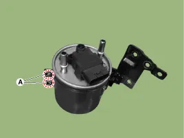 Halterungsschrauben (A) herausdrehen, Kraftstofffilter von der Halterung abnehmen und durch einen neuen ersetzen, dann den Kraftstofffilter in umgekehrter Reihenfolge des Ausbaus wieder einbauen.