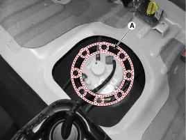 Befestigungsschrauben lösen, dann die Abdeckung (A) abnehmen und die Kraftstoffpumpe aus dem Kraftstofftank ausbauen.