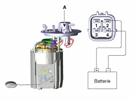 Stecker (A) der Kraftstoffpumpe abklemmen.