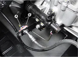 Kupplungsschlauch (A) vom Kupplungsgeberzylinder abnehmen.