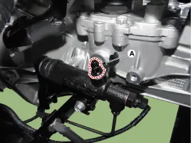 Schraube (A) bei betätigtem Kupplungspedal festziehen. Anschließend das Pedal von Hand anheben. |