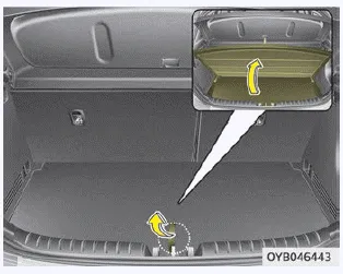 Wenn Sie den Laderaum vergrößern möchten, 1. Erfassen Sie den Griff oben an der Abdeckung und heben Sie die Abdeckung damit an 2. Klappen Sie den hinteren Teil des Laderaumbodens nach vorne.