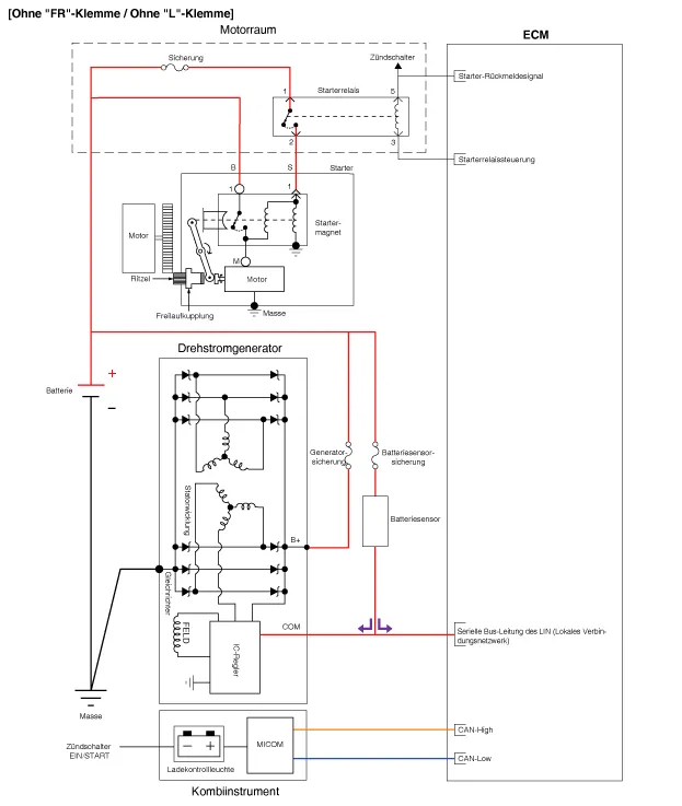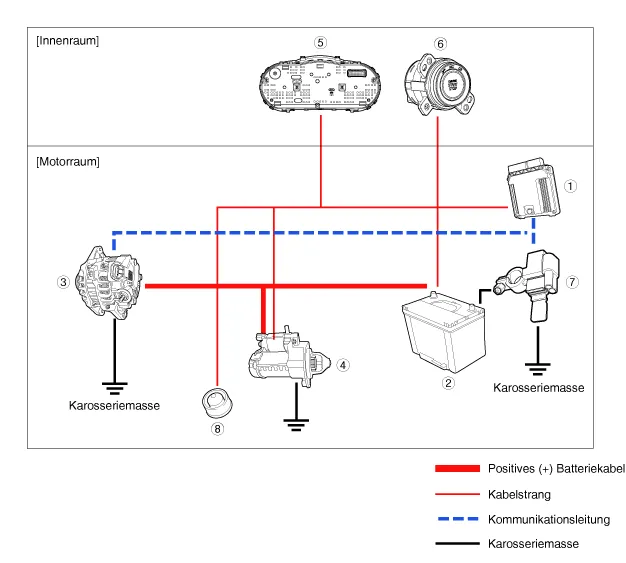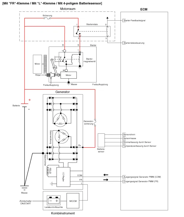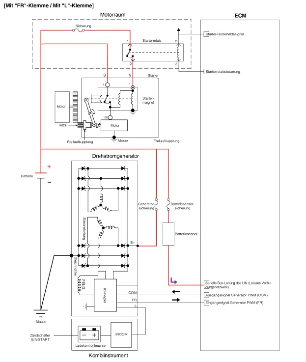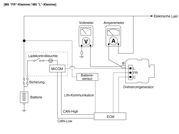 Die Ladespannung dieses Generators wird durch das System zur Messung der Batteriespannung