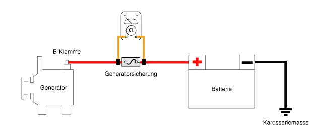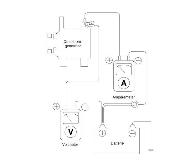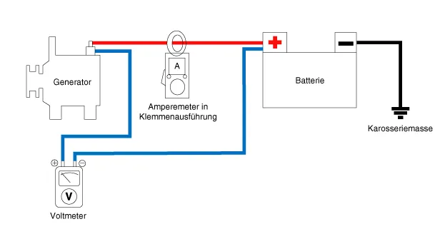 Amperemeter in Reihe zwischen Batterie-Klemme (-) und dem Massekabel