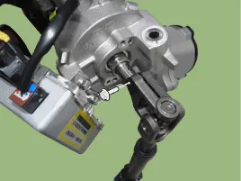 Schraube lösen und Kreuzgelenk von der Lenksäule abtrennen.
