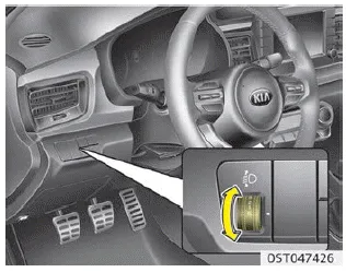Um die Leuchtweite entsprechend der Anzahl der Insassen und dem zugeladenen Gewicht im Laderaum einzustellen, drehen Sie das Stellrad.
