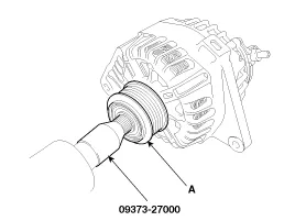 Mit dem Spezialwerkzeug (09373-27000) OAP-Riemenscheibe (A) ausbauen.