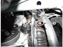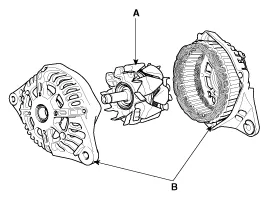 Befestigungsmutter (A) lösen, dann Generatorklemme "B" abklemmen. |