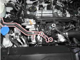 Befestigungsschrauben lösen, dann Kühlmittelschlauchhalterung (A) lösen.