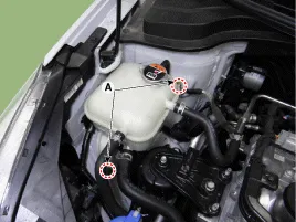 Befestigungsschraube und -mutter (A) des Ausgleichsbehälters entfernen.