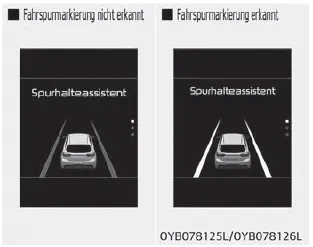Der Spurhalteassistent (LKA) soll dazu beitragen, dass der Fahrer die Fahrspur nicht verlässt. Der Fahrer darf sich jedoch nicht ausschließlich auf das System verlassen, sondern muss während der Fahrt immer die Fahrbahnbedingungen überprüfen.