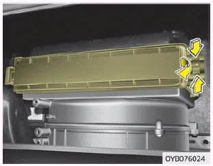 Der Luftfilter der Klimaanlage muss laut Wartungsplan ersetzt werden. Wenn das Fahrzeug über einen längeren Zeitraum in Großstädten mit hoher Luftverunreinigung oder auf unbefestigten, staubigen Straßen eingesetzt wird, muss der Filter häufiger geprüft und früher ersetzt werden. Wenn Sie den Luftfilter der Klimaanlage ersetzen, ersetzen Sie ihn auf folgende Art und Weise und gehen Sie sorgfältig vor, um eine Beschädigung anderer Bauteile zu vermeiden.