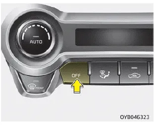 Drücken Sie die Taste OFF, um die Klimaanlage auszuschalten. Die Frischluft-/ Umluftschaltung können jedoch weiterhin bedient werden, solange die Zündung eingeschaltet ist.